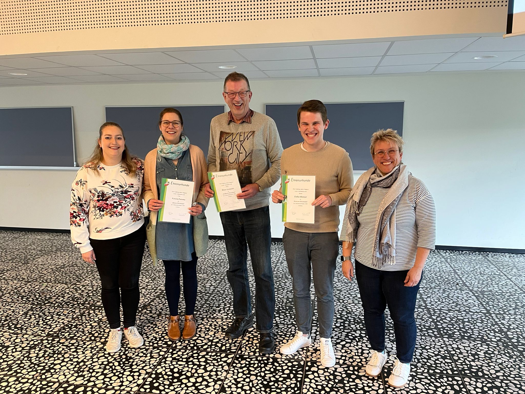 Natascha Flormann (Vorsitzende), Verena Futoma (25 Jahre Mitgliedschaft), Klaus Liomanis (20 Jahre Mitgliedschaft), Lukas Kretzer (10 Jahre Mitgliedschaft), Liane Sickmann (Stellv. Vorsitzende)