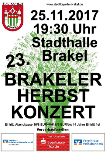 Am 25.11. ist es wieder soweit. Die Stadtkapelle Brakel lädt zum jährlichen Höhepunkt im musikalischen Kalender ein und das schon zum 23. Mal. Seit 1995 lockt das alljährliche Herbstkonzert Besucher aus nah und fern in die Nethestadt.